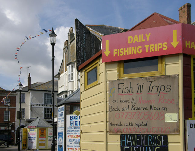 Falmouth harbour with both old and modern buildings.