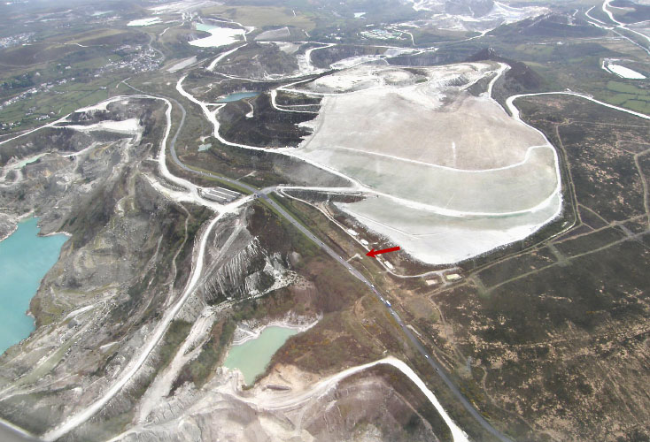 The waste from the production is usually left in steep heaps, but lately there are experiments going on, where the heaps are flattened out and covered in papier mâché to prepare the soil for plant growth. The photos were taken here at