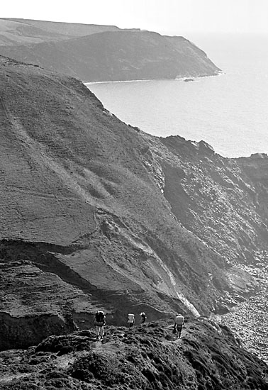 Cambeak, Tintagel Head, Pentire Rump and Trevose Head seen from Dizzard Point.
