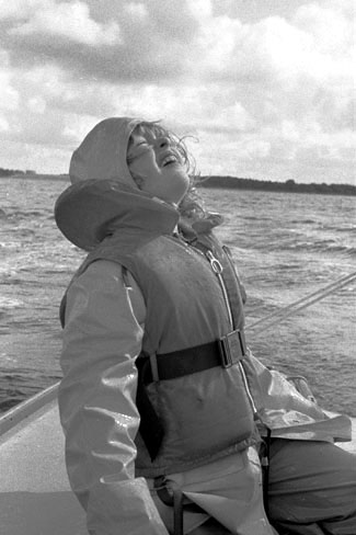 Signe sejler dog også stadig i Puk. Her styrer hun en dag med meget frisk vejr.